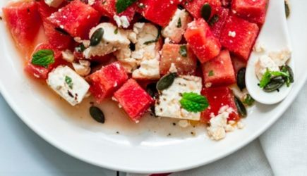Пошаговый рецепт летнего салата с фетой и арбузом